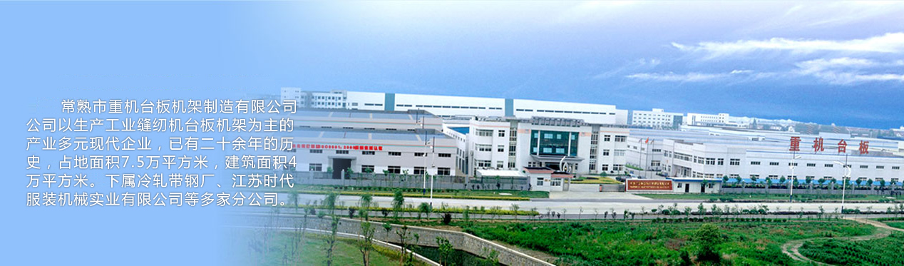 常熟市重機臺板機架制造有限公司,公司以生產工業縫紉機臺板機架為主的產業多元現代企業,已有二十余年的歷史,占地面積7.5萬平方米,建筑面積4萬平方米。下屬冷軋帶鋼廠、江蘇時代服裝機械實業有限公司等多家分公司。